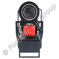 The Flagro FVO200-RC42 indirect-fired oil heater with an extended run-time fuel tank has a 42-USG capacity, heavy-duty, flat-free tires, and a slim design for easy site mobility and transportation. All 200-series units have a digital voltage display and can be thermostatically controlled.